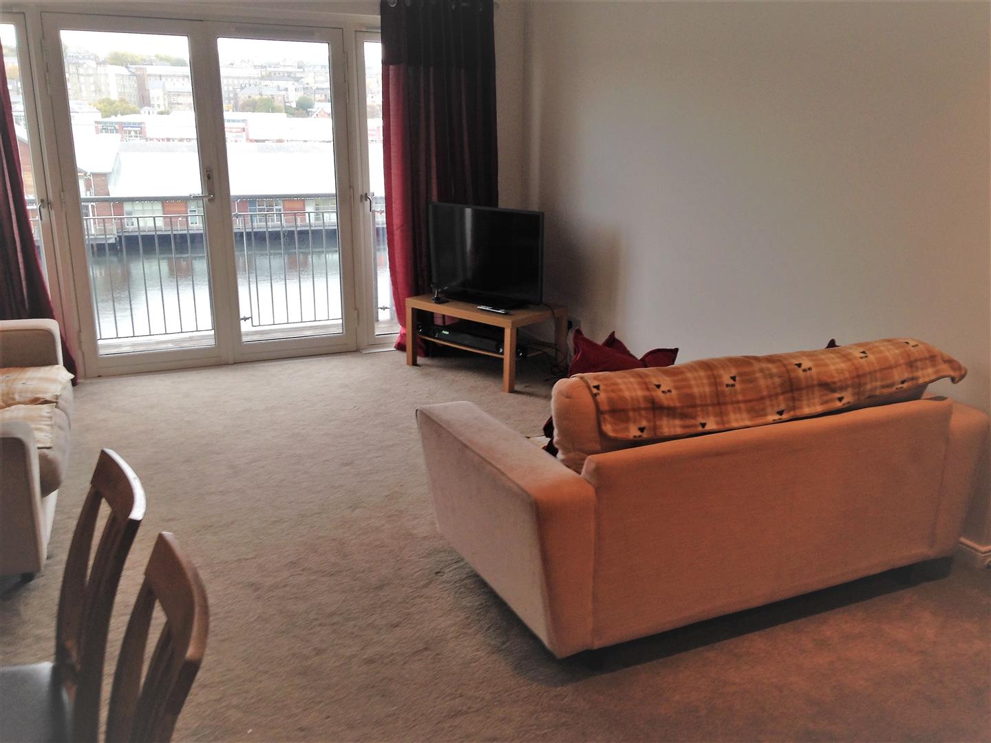 Property comprises of, bright airy Living room with balcony, stunning views towards river, modern Kitchen with integrated appliances , two double Bedrooms both with built in wardrobes, master ensuite. Bathroom with electric shower over bath.